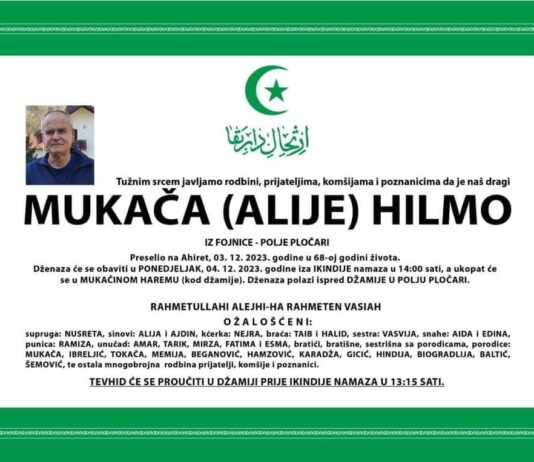 Na Ahiret je preselio MUKAČA HILMO iz Fojnice